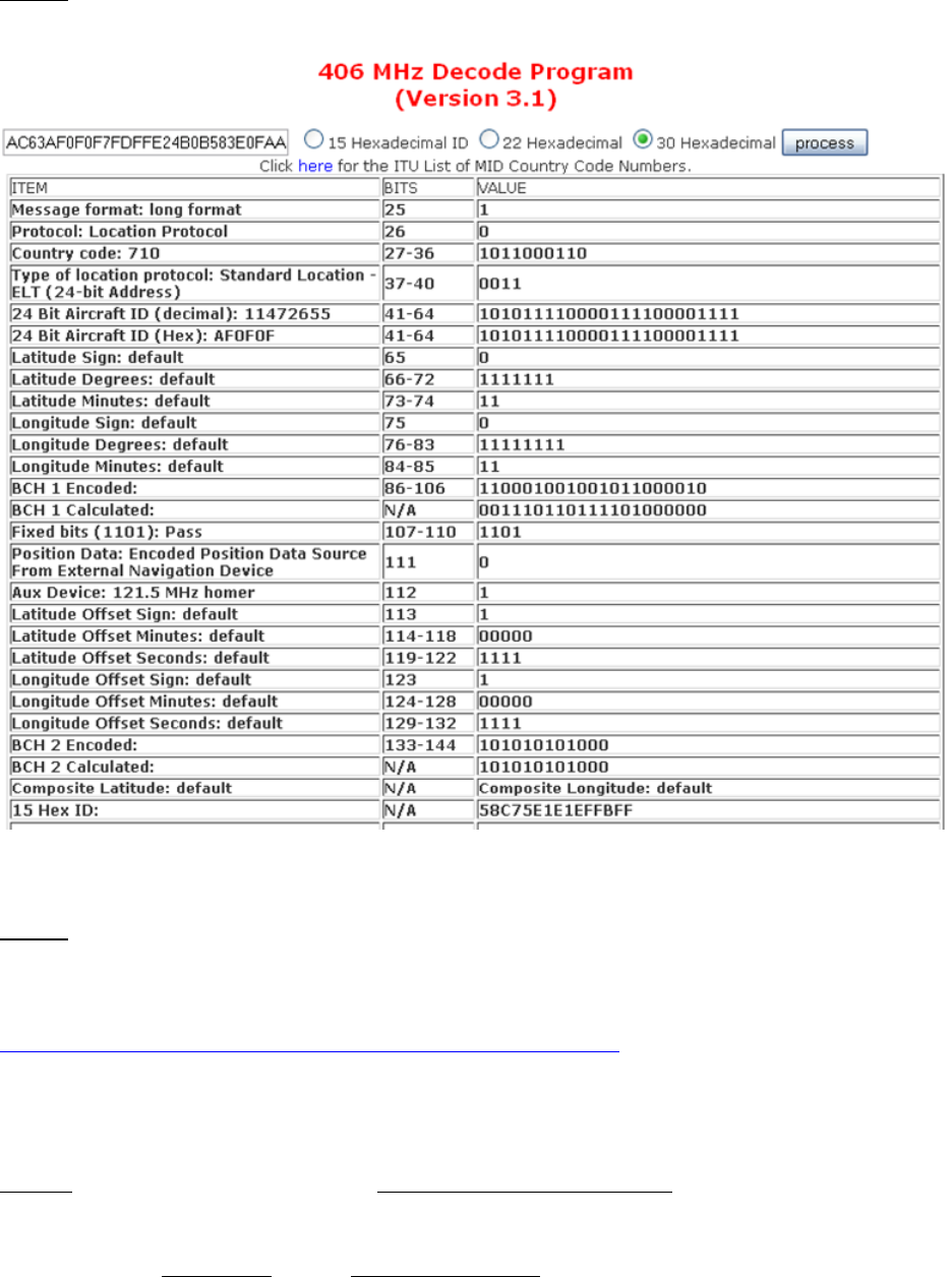 Input the 30-digit hex code into the 406 MHz Decode Program provided. See below: