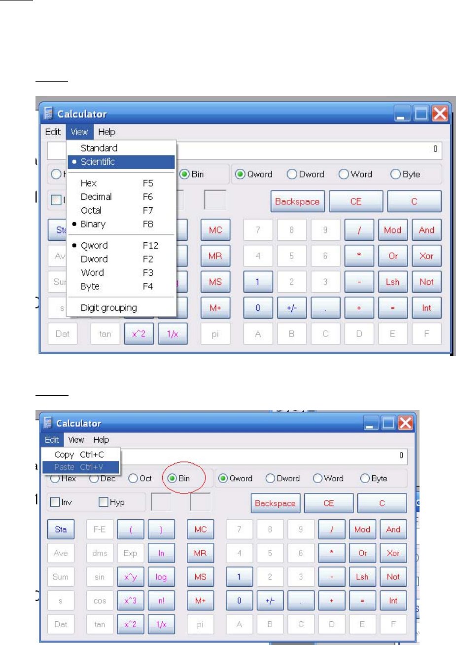 Step b: Paste the template to the calculator in Binary mode